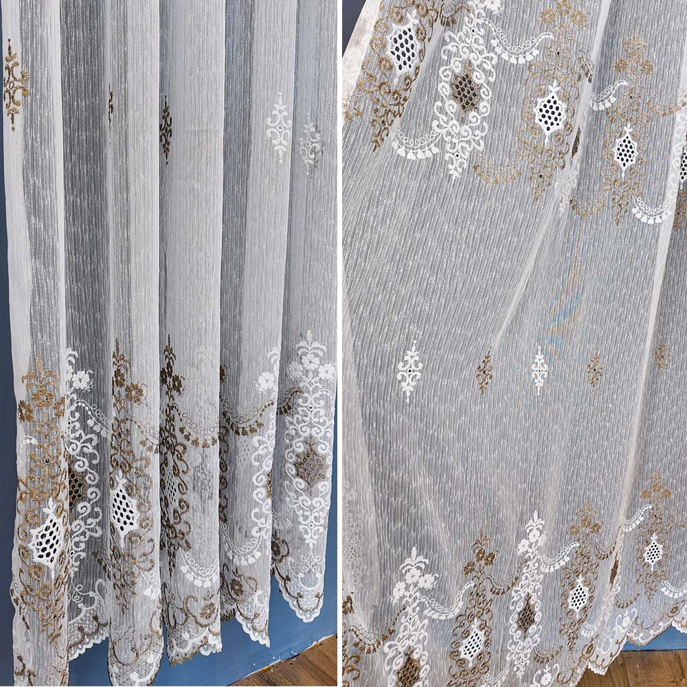 Perdea Fina Luisa cu Broderie Alb/Maro 24443