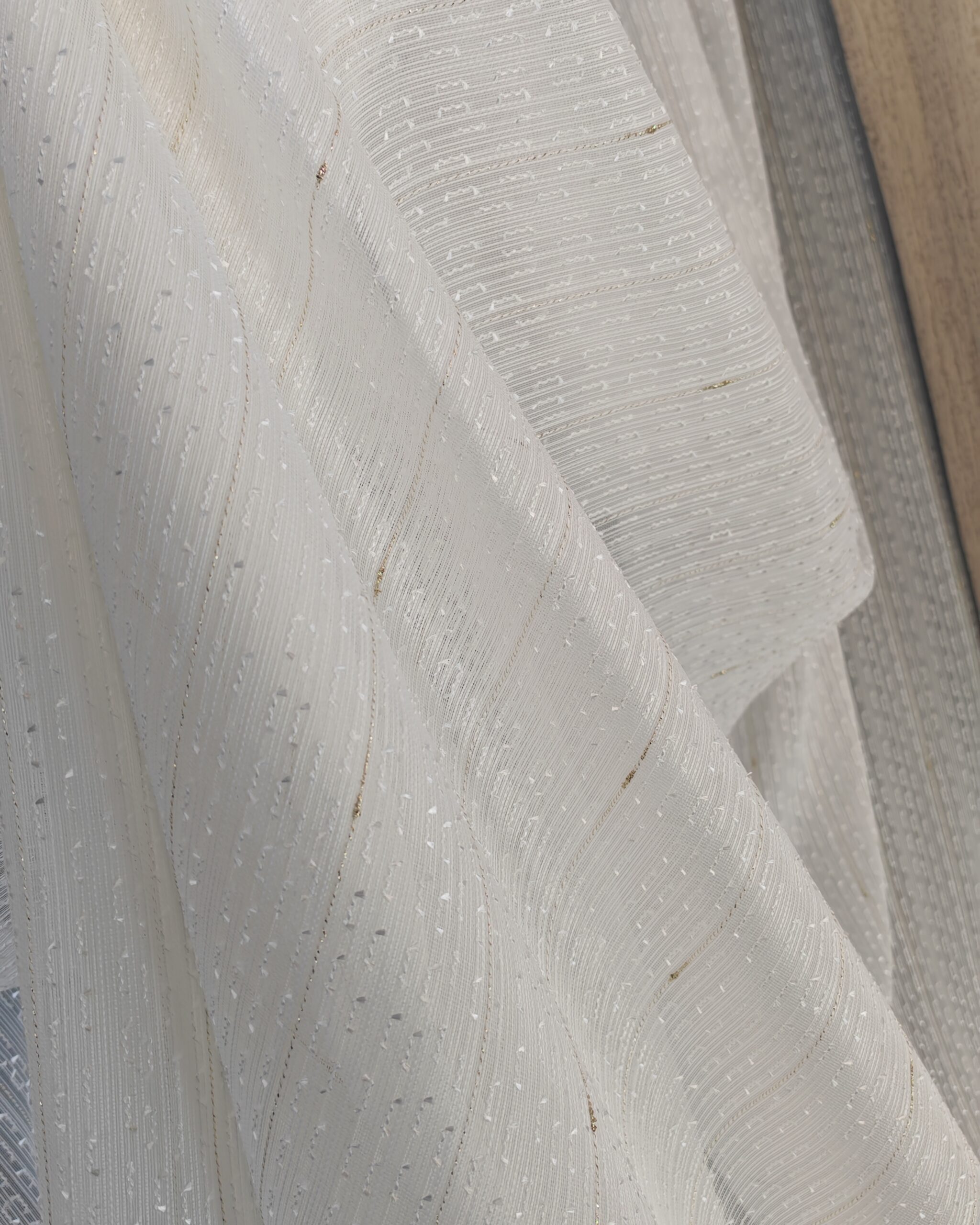 Perdea Idil Simpla Texturata Crem cu Insertii Aurii
