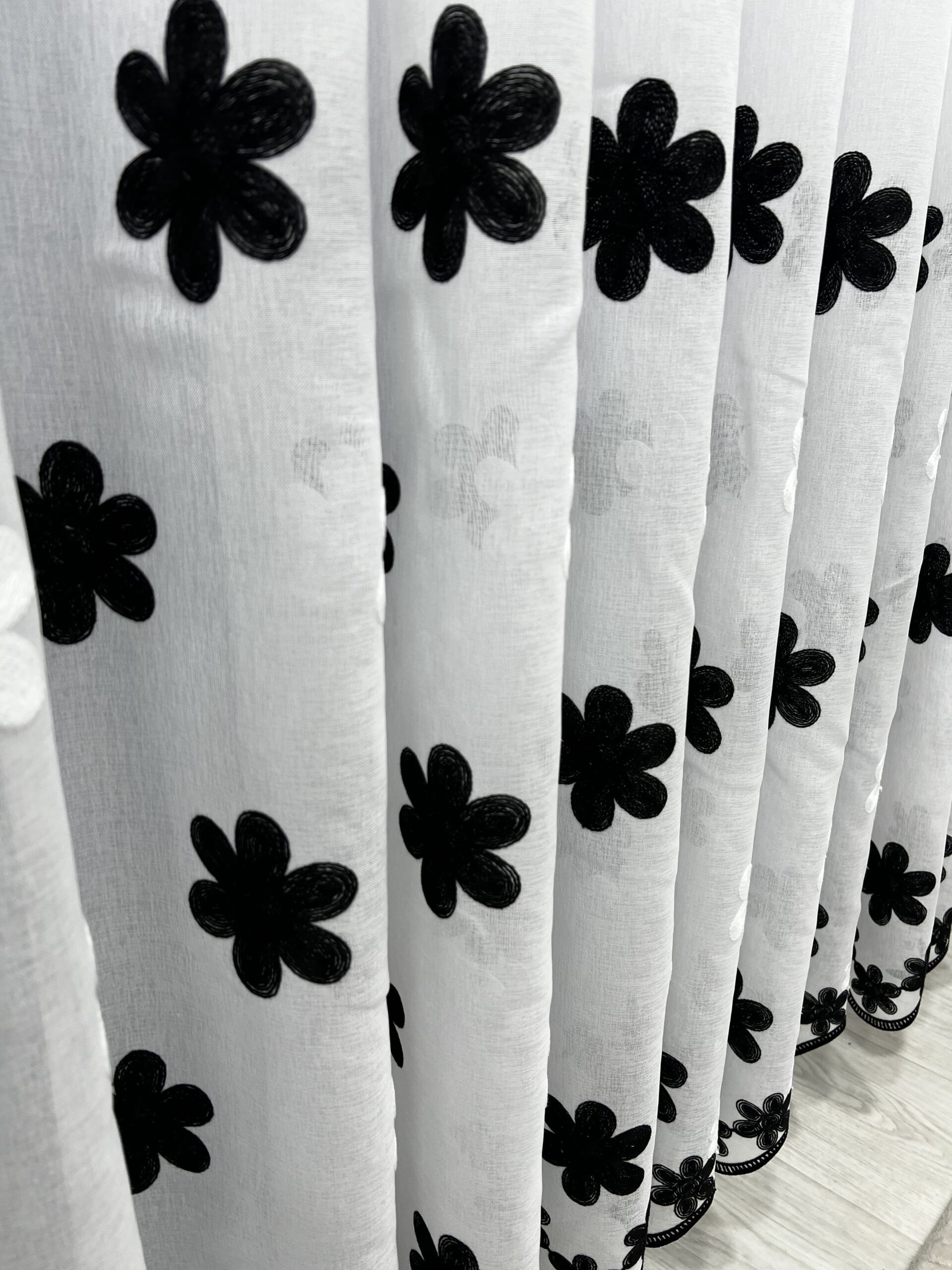 Perdea In cu Brodat Flori Negre L2m/H2.15m cu Rejansa de 6cm
