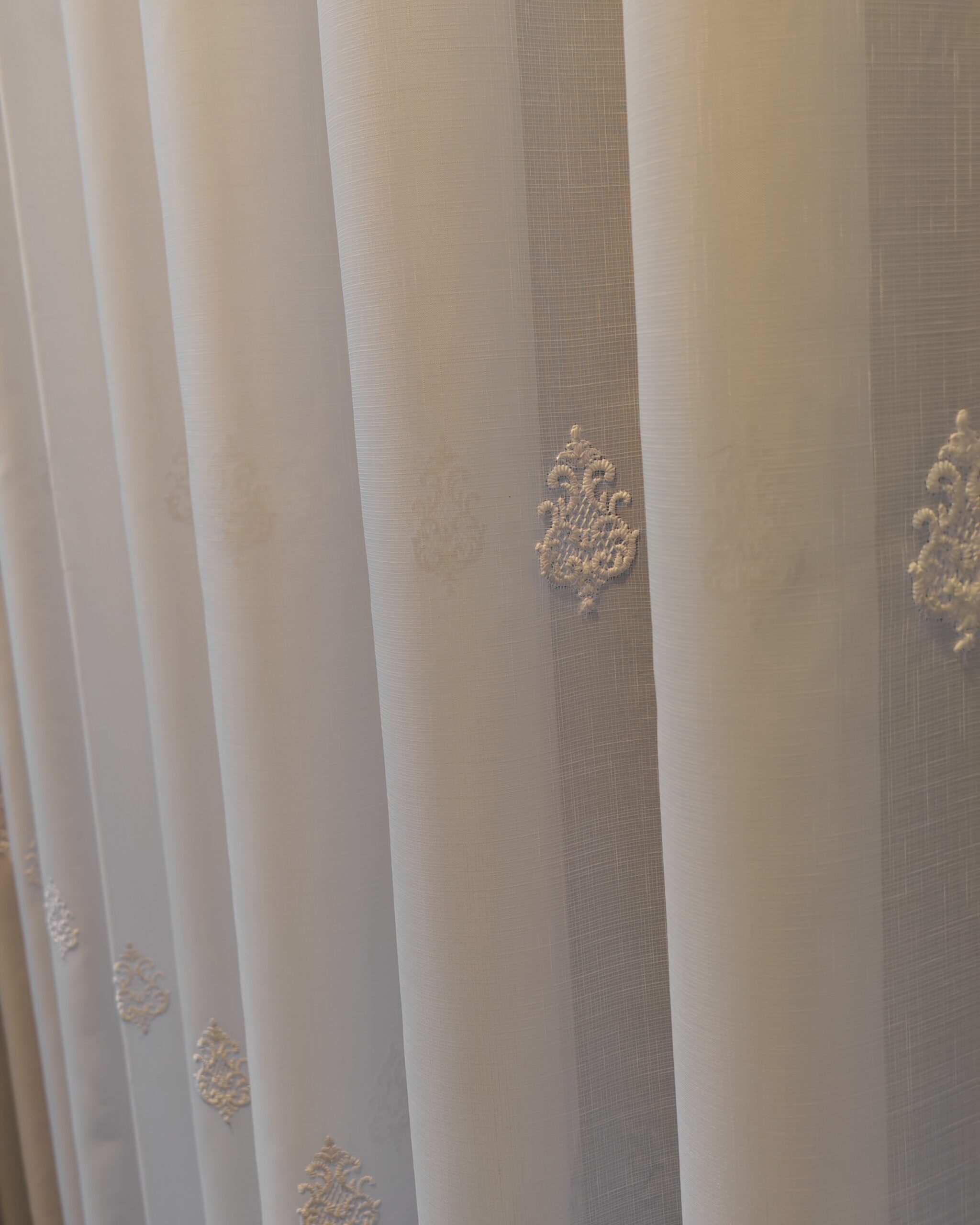 Perdea Isabelle din In cu Broderie Eleganta Alb L4.75m/H2.55 cu Rejansa Wave