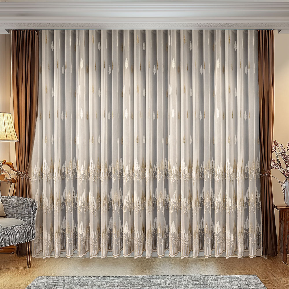 Perdea Jasmin cu Broderie Moderna Crem/Auriu 25PR194