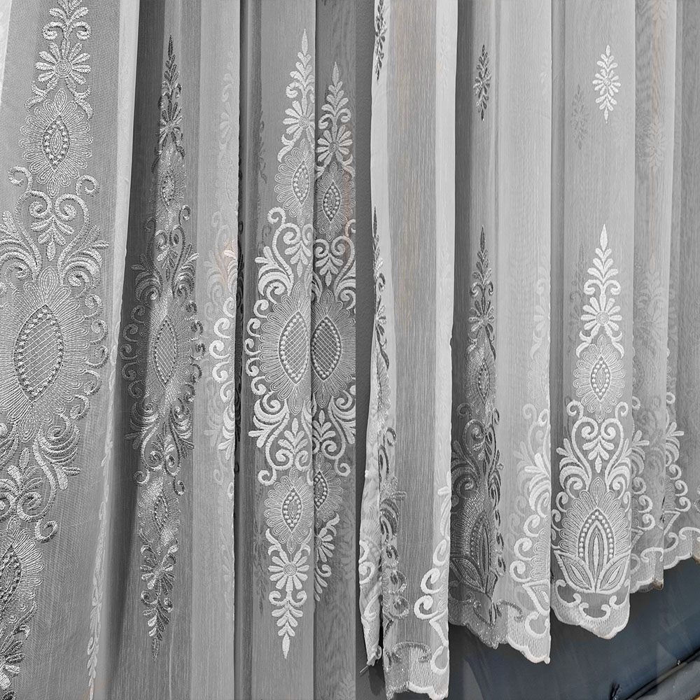 Perdea Lucia cu Broderie Deosebita Alba/Gri