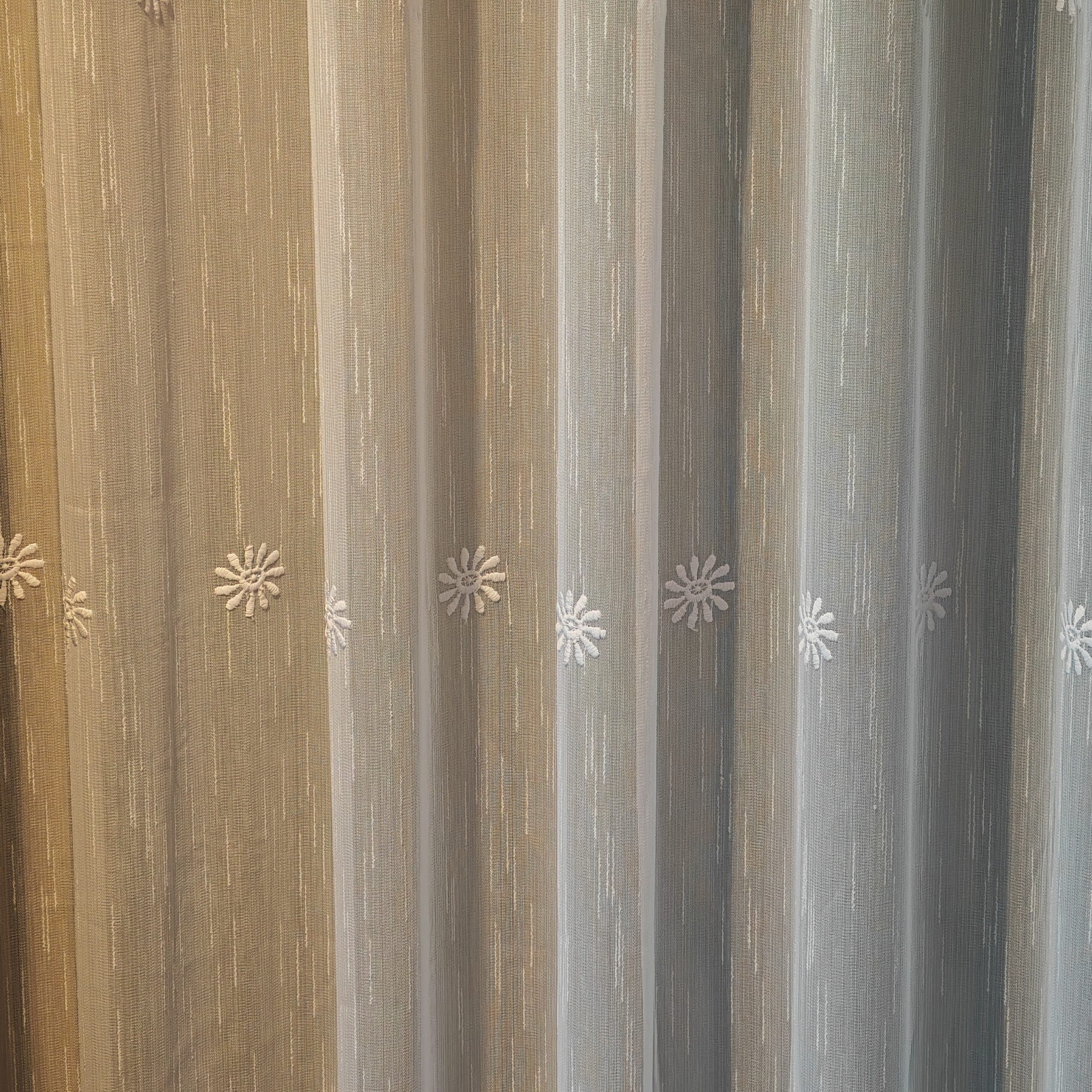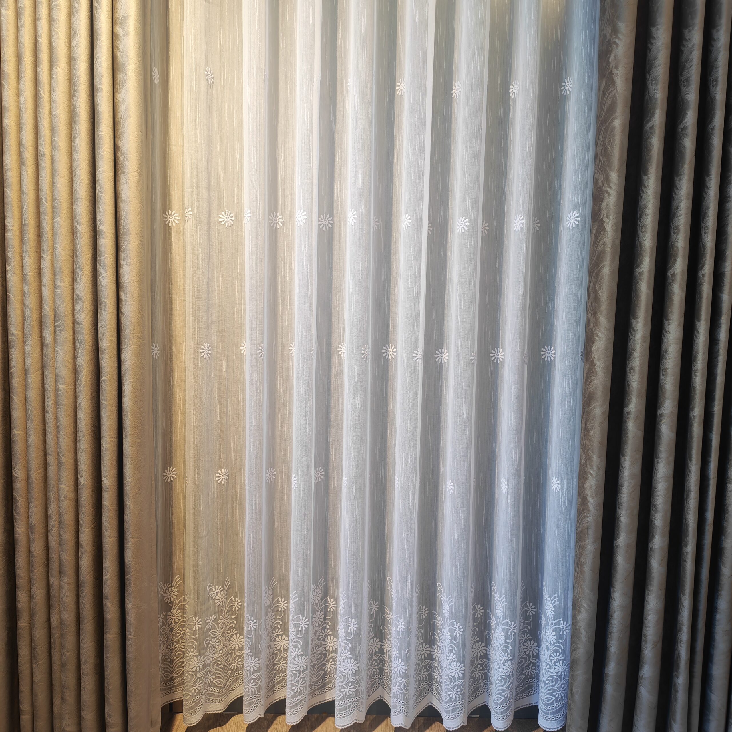 Perdea Mara din In cu Broderie Florala Alb 25PR405
