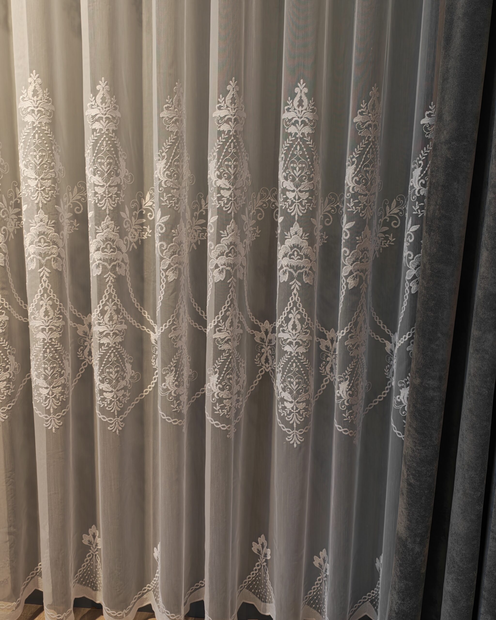 Perdea Mona din Bambus cu Broderie Albă 48107 L4.40m/H2.60m cu Rejansa Wave