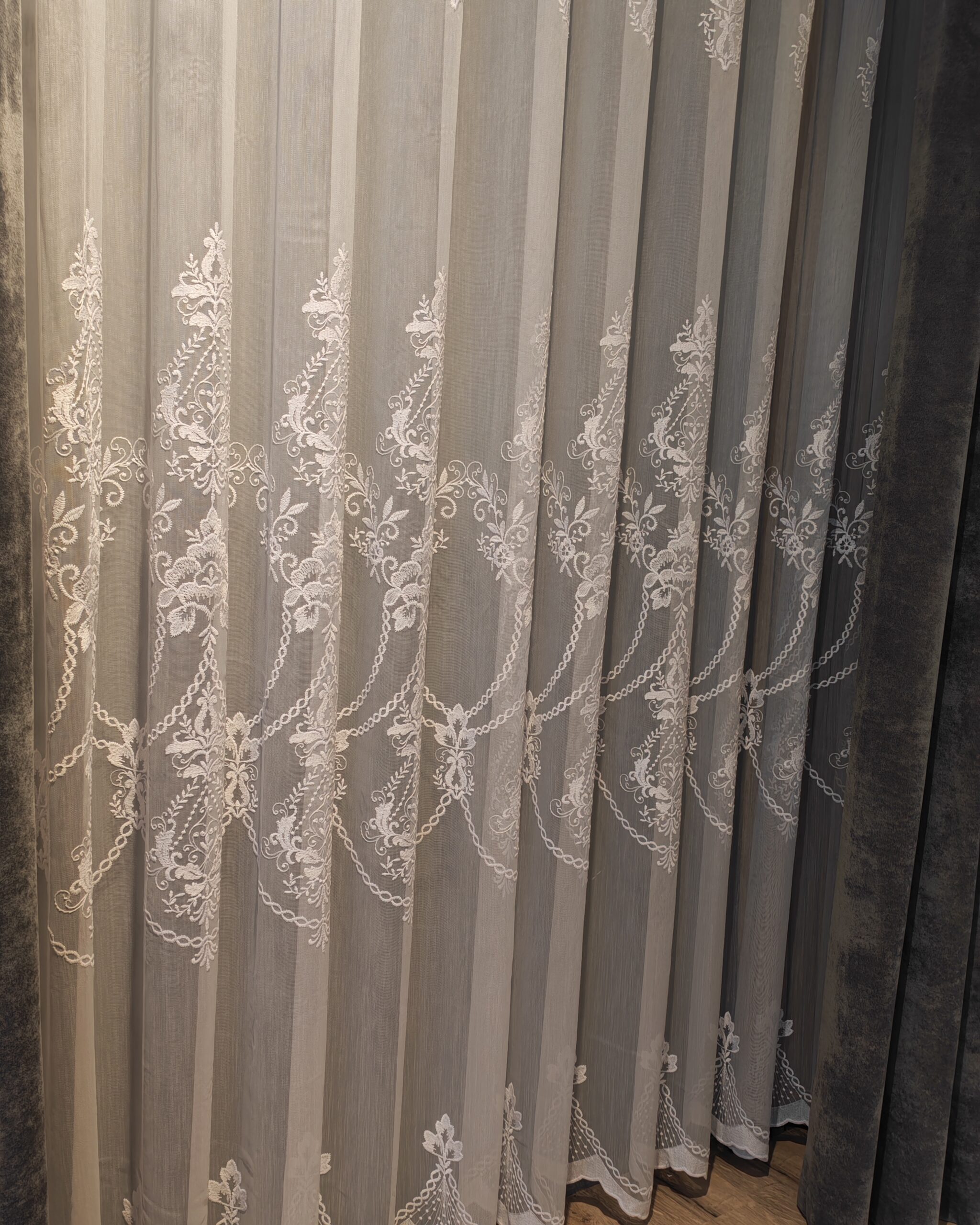 Perdea Mona din Bambus cu Broderie Albă 48107