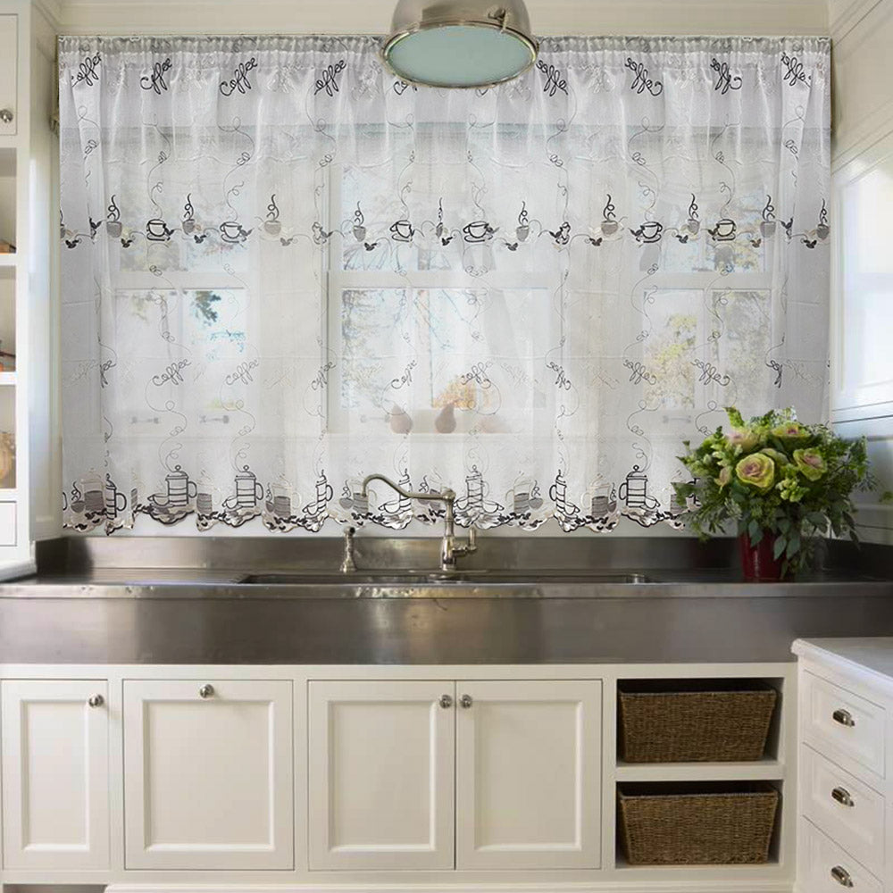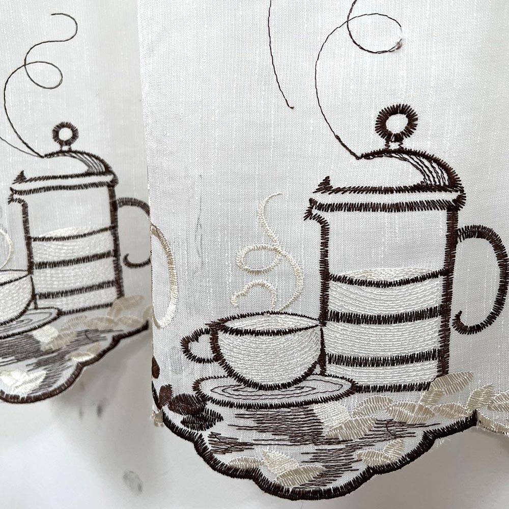 Perdea Pentru Bucatarie cu Model Brodat Maro-Auriu L1.5m/H2.20m cu Rejansa de 8 Creion