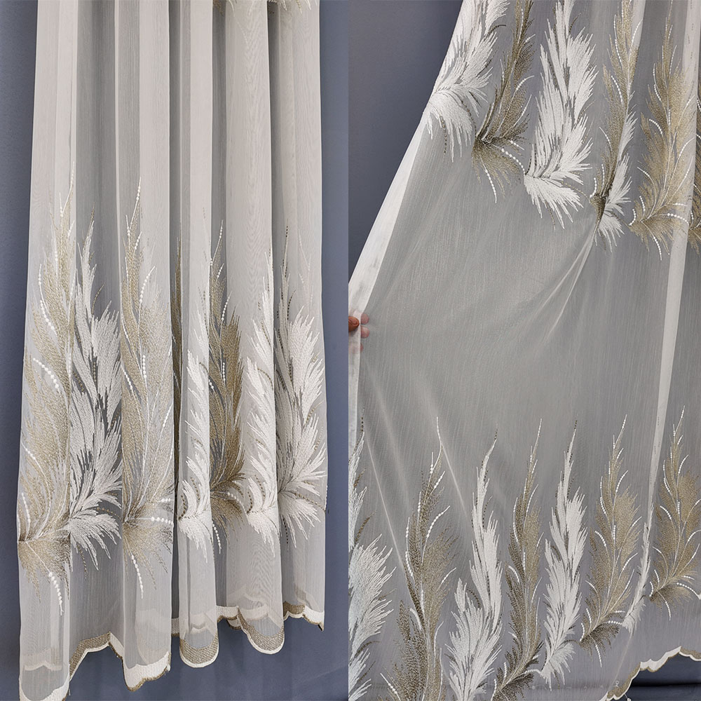 Perdea Serenity cu Broderie Premium Crem /Auriu 24779L1.35m/H2.55m cu Pliu Pauza Pliu (sina de 0.50 mt)