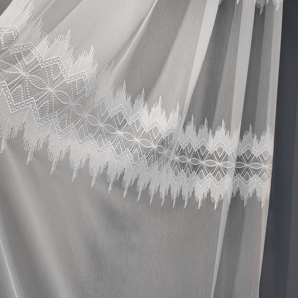 Perdea Steluta cu Broderie Eleganta Alb 12617 L2m/H2.55m cu Rejansa de Bara