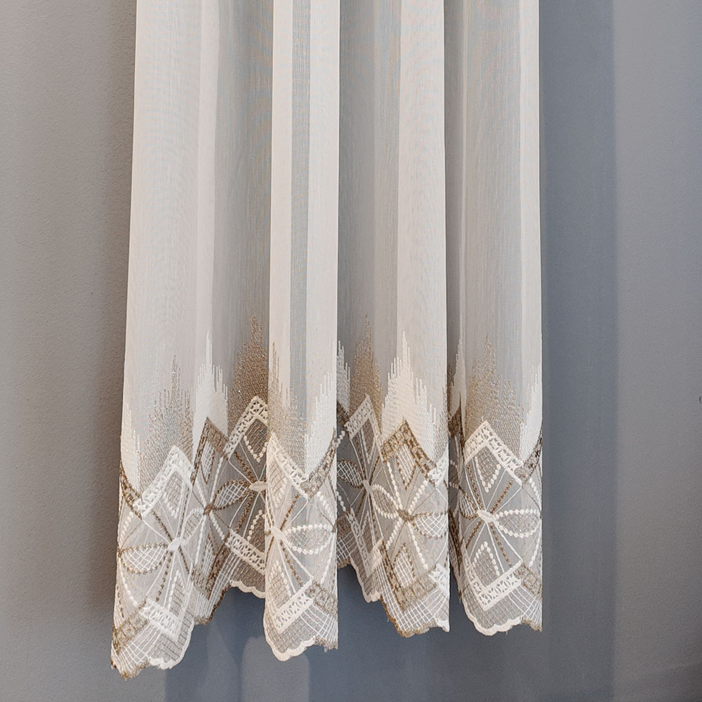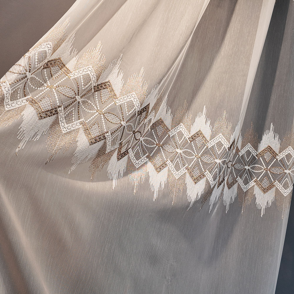 Perdea Steluta cu Broderie Eleganta Crem/Maro L5m/H2.60 cu Rejansa Wave
