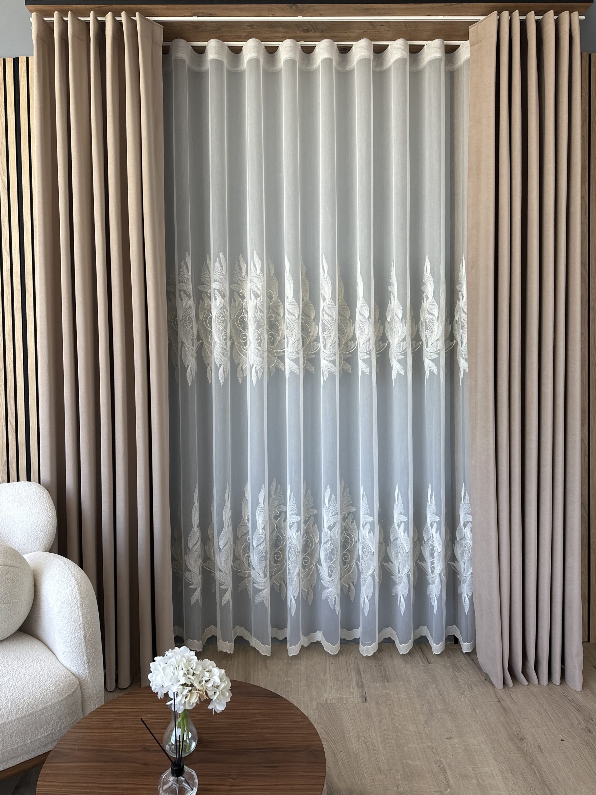 Perdea Vanessa cu Broderie Fina – Crem-Auriu 25PR140