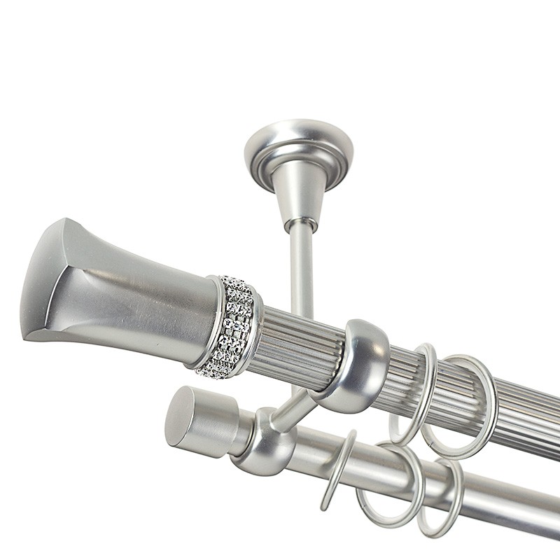 Pluton Crystal – set galerie metalica dubla, prindere tavan, teava striata Crom Mat 25/19 mm