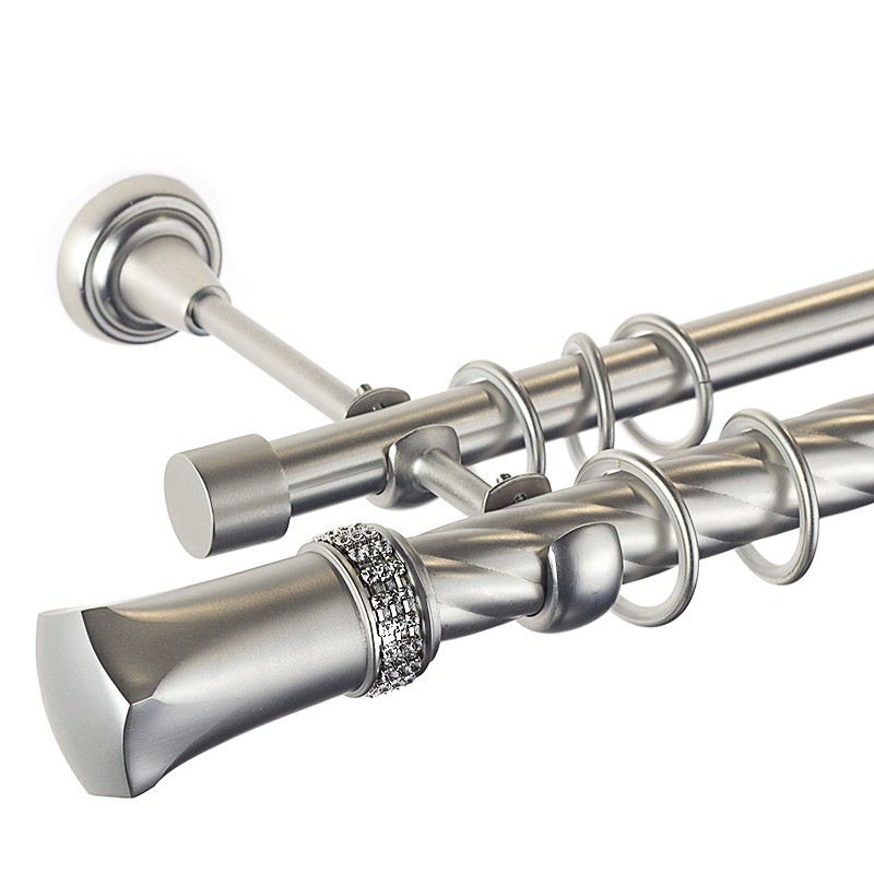 Luxor – set galerie metalica dubla,prindere tavan, teava Twister, Crom Mat 25/19 mm