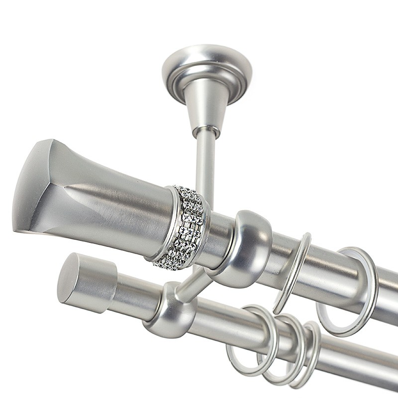 Pluton Crystal – set galerie metlalica dubla prindere tavan Crom Mat 25/19 mm