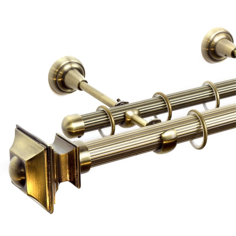 Verdi – set galerie metalica dubla , teava striata Aur Antic 25/19 mm