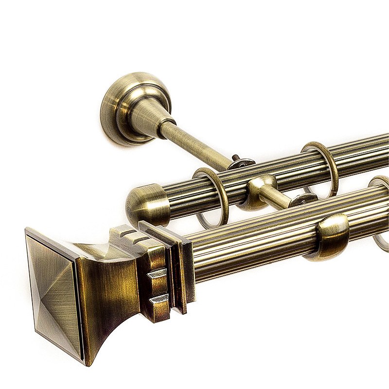 Verona – set galerie metalica dubla, teava striata Aur Antic 25/19 mm