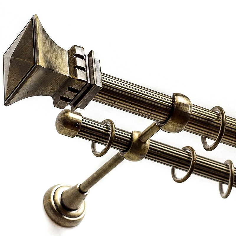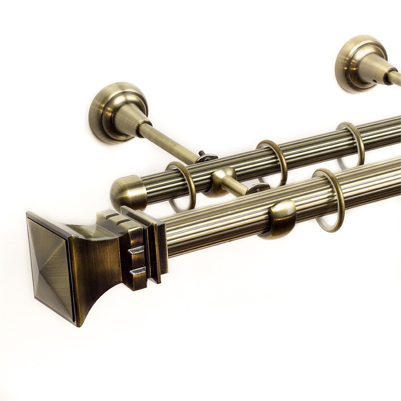 Verona – set galerie metalica dubla, teava striata Aur Antic 25/19 mm